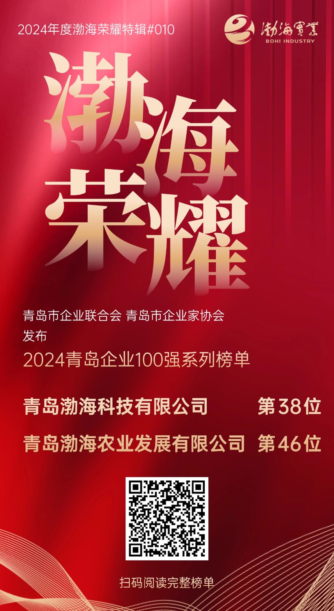 11月1日晚,青島市企業(yè)聯(lián)合會(huì)、青島市企業(yè)家協(xié)會(huì)發(fā)布2024青島企業(yè)100強(qiáng)系列榜單,青島渤??萍加邢薰?strong>位列38位,青島渤海農(nóng)業(yè)發(fā)展有限公司位列46位。